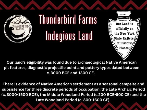 Thunderbird Farms consists of 54 acres located at 13 Van Sickle Road in Pine Island, New York and occupies a historically significant site on Black Walnut Island 2, an area with deep archaeological relevance. This land is part of the Black Dirt Region of the Wallkill River Valley and possesses notable archaeological integrity, with well-preserved and documented features that showcase significant aspects of pre-contact Native American life and the seasonal campsites that once existed.
